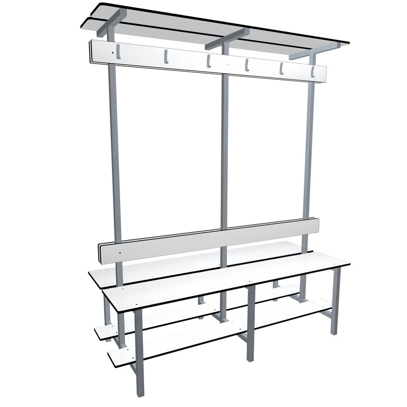 Os bancos duplos apresentam a mesma quantidade de cabides em ambos os lados do varão.