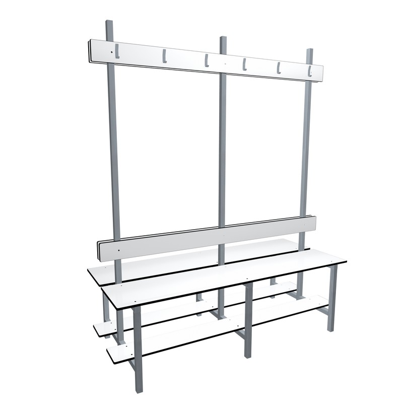 Os bancos duplos apresentam a mesma quantidade de cabides em ambos os lados do varão.